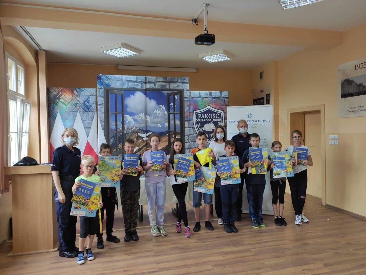 Policjanci i inspekcja pracy oraz strażacy spotkali się dziećmi, które uczestniczą w półkoloniach zorganizowanych przez Szkołę Podstawową im. Ewarysta Estkowskiego w Pakości. Było edukacyjnie o wakacjach. Odbyły się pogadanki na temat bezpiecznego wypoczynku, gry i zabawy związane z bezpieczeństwem oraz dyskusja z uczestnikami spotkania.