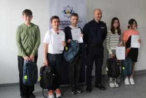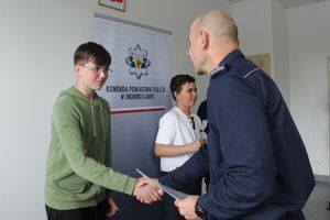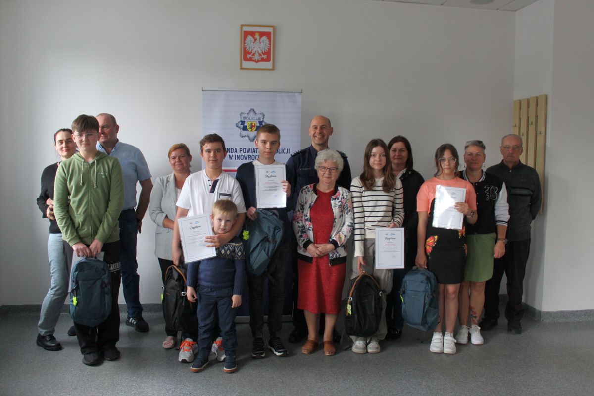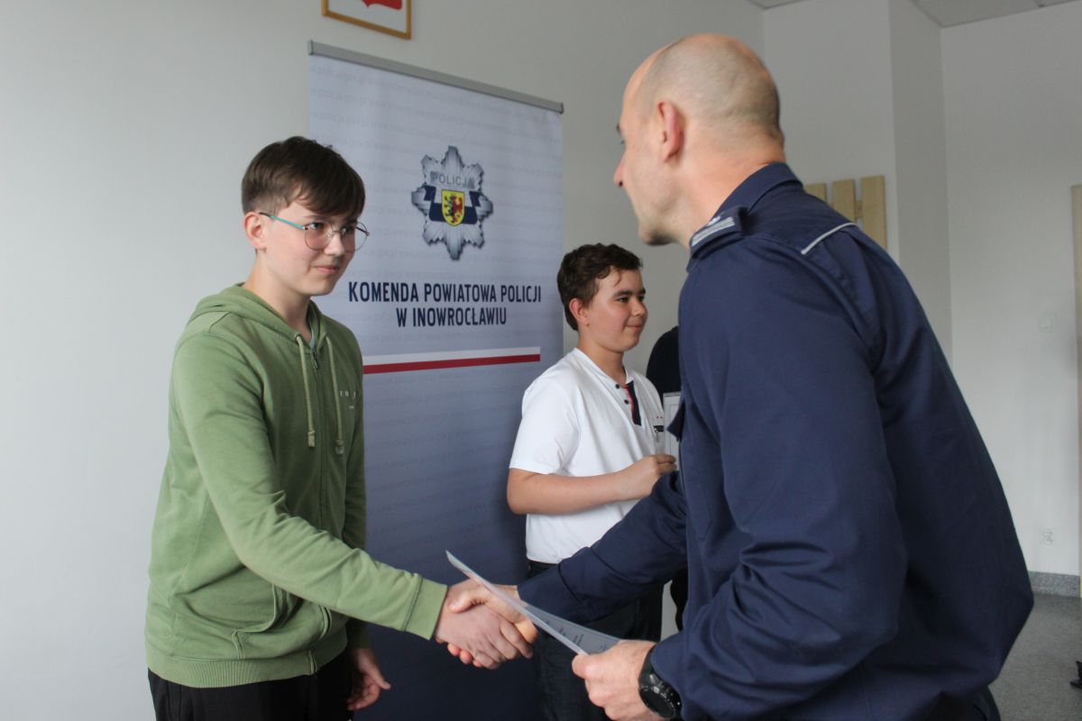 Na piątek (10.05.24) laureaci wraz z rodzinami zostali zaproszeni do siedziby inowrocławskich policjantów. Komendant Powiatowy Policji w Inowrocławiu insp. Robert Olszewski wręczył im upominki w postaci zestawów biwakowych. Komendant pogratulował zwycięzcom i zachęcił do uczestnictwa w innych policyjnych konkursach. Dziękował także rodzicom za to, że ich dzieci angażują się w tematykę bezpieczeństwa. Upominki ufundował Powiat Inowrocławski.