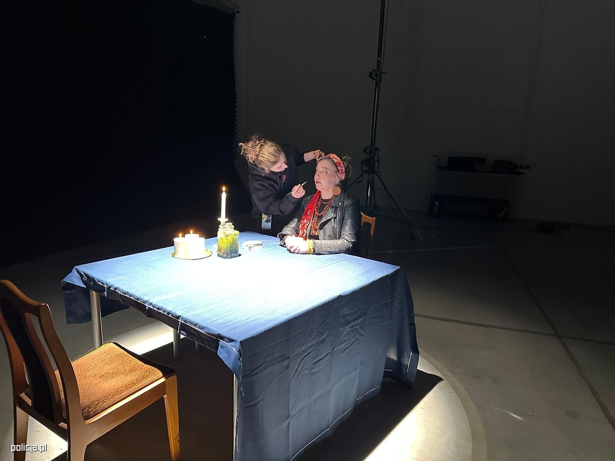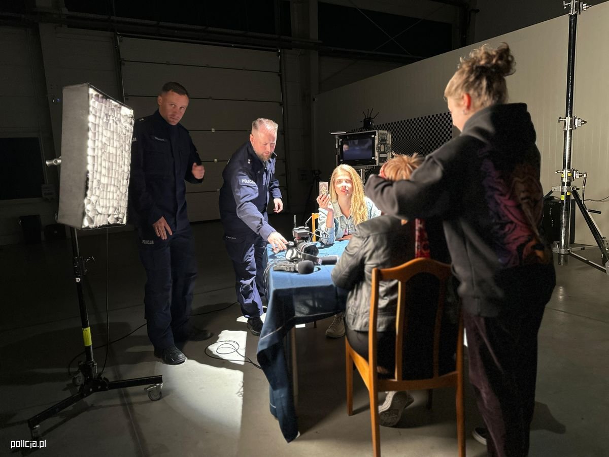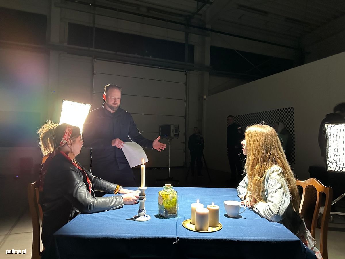 W produkcji spotu wzięli udział pracownicy Policji oraz aktorzy-amatorzy: Monika Wsolak, Weronika Miezancew oraz Artur Adamczyk. Sceny realizowane były w różnych lokalizacjach w Warszawie, m.in. w restauracji, której współwłaściciel, Spiros Koulouris, bezinteresownie udostępnił lokal. O profesjonalną charakteryzację zadbały Magdalena Sosińska, Dorota Graczykowska oraz Weronika Reda. Produkcję nadzorowała Marta Chabros wraz z asystentką Weroniką Zwierz.