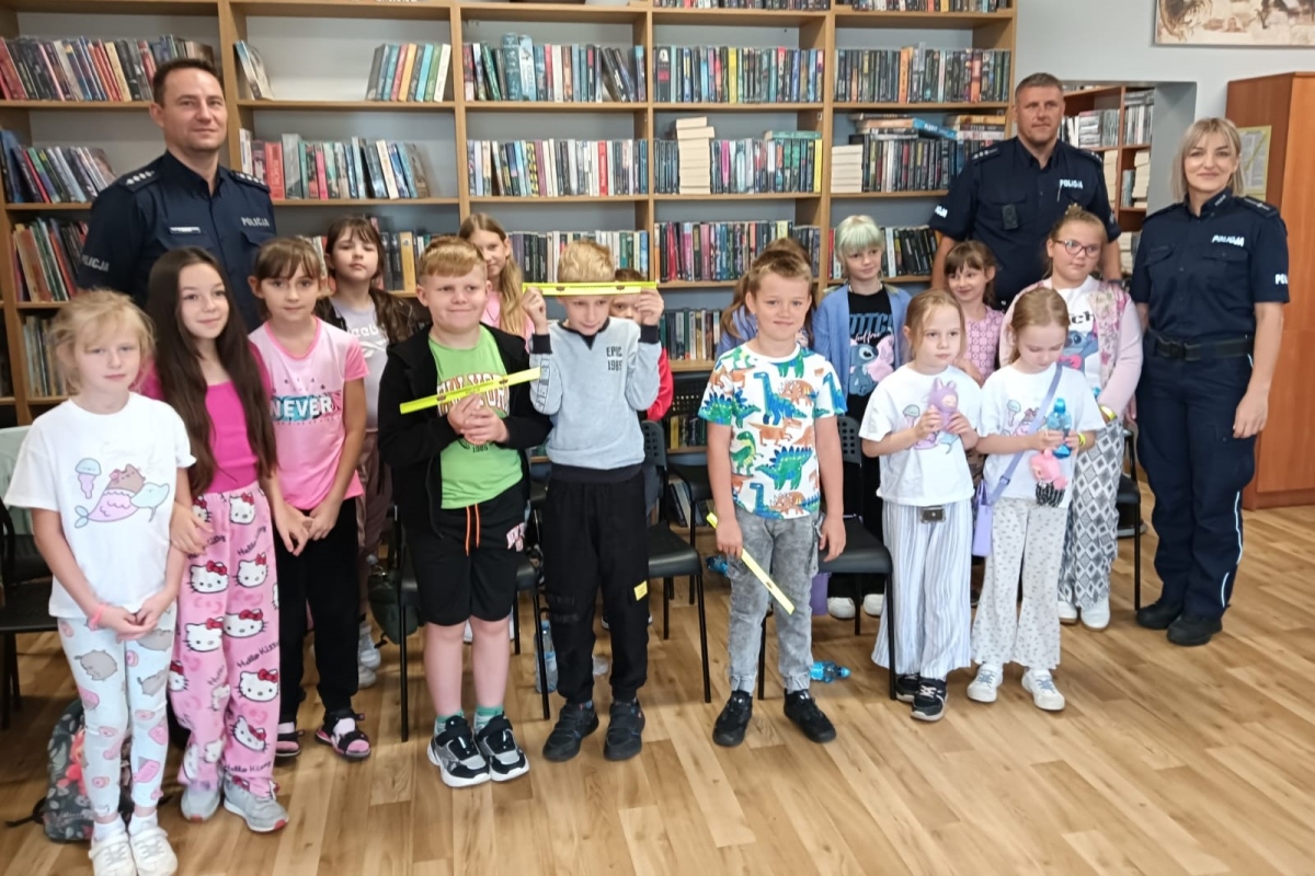 Dzielnicowi wspólnie z profilaktykiem odwiedzili dzieci w Gminnej Bibliotece w Jaksicach. Głównym celem spotkania było przypomnienie o bezpieczeństwie podczas trwających wakacji.