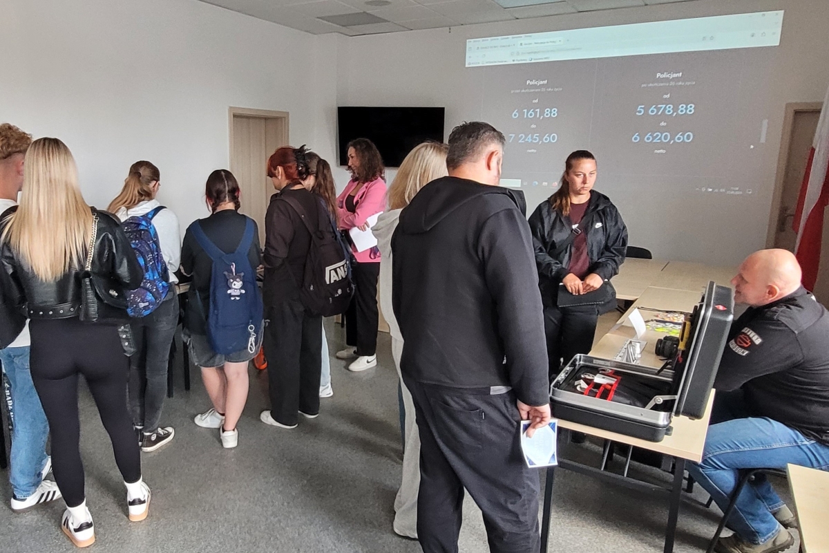 Podczas wizyty odwiedzający mieli okazję zapoznać się z codzienną pracą funkcjonariuszy, poznać strukturę jednostki, a także porozmawiać z policjantami pełniącymi służbę w różnych pionach.Pracownice z zespołu kadr przedstawiły zainteresowanym ścieżkę rekrutacji do Policji – od wymaganych dokumentów, przez testy sprawnościowe, aż po szkolenie podstawowe i dalsze możliwości rozwoju zawodowego. Każdy z uczestników miał szansę uzyskać odpowiedzi na pytania dotyczące wymagań i realiów służby.
