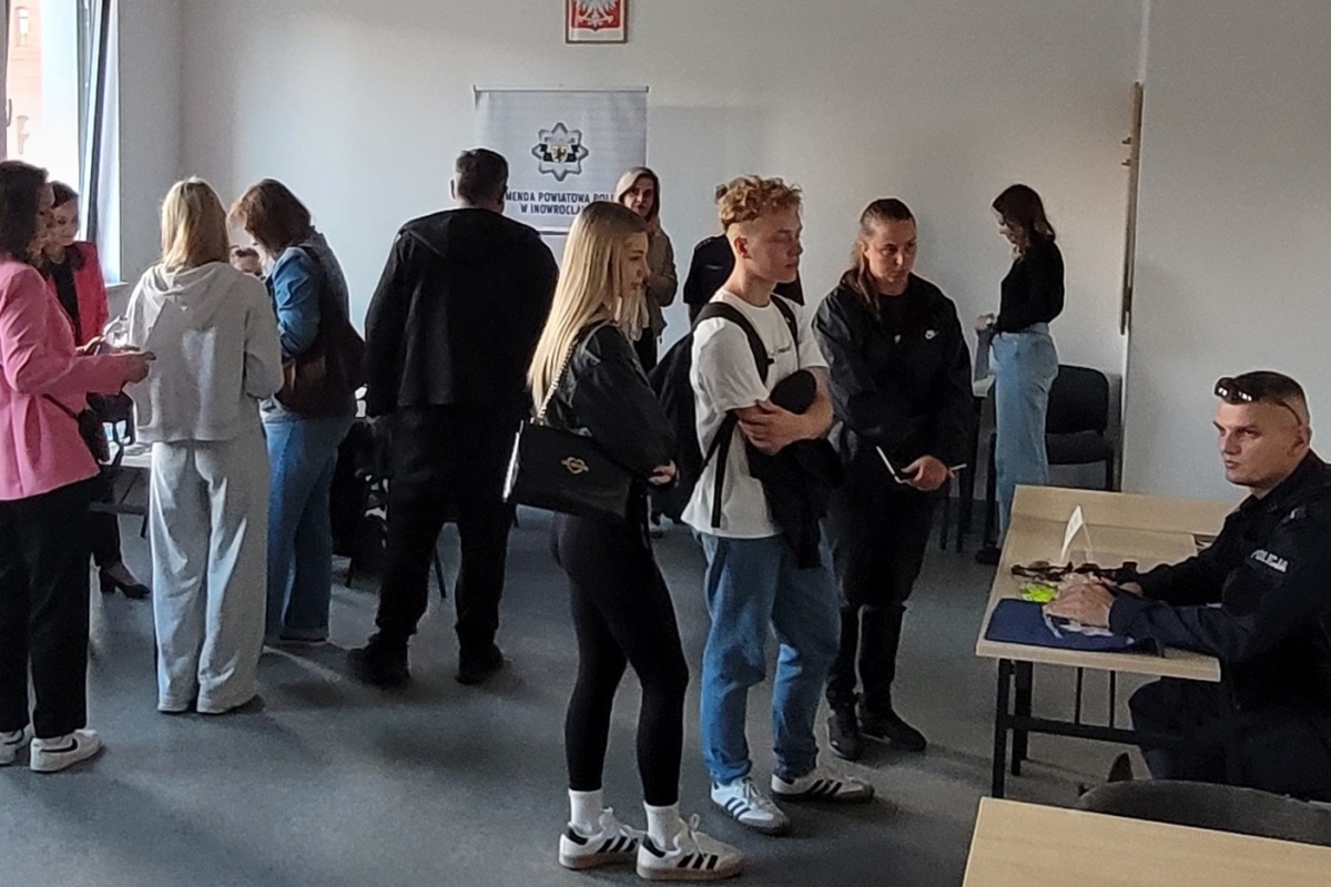 Policjanci i pracownicy Komendy Powiatowej Policji w Inowrocławiu zorganizowali spotkanie w ramach zainteresowania tą służbą mundurową. Chętni mogli poznać bliżej zasady rekrutacji, porozmawiać z policjantami różnych komórek organizacyjnych i obejrzeć sprzęt wykorzystywany w codziennej służbie.