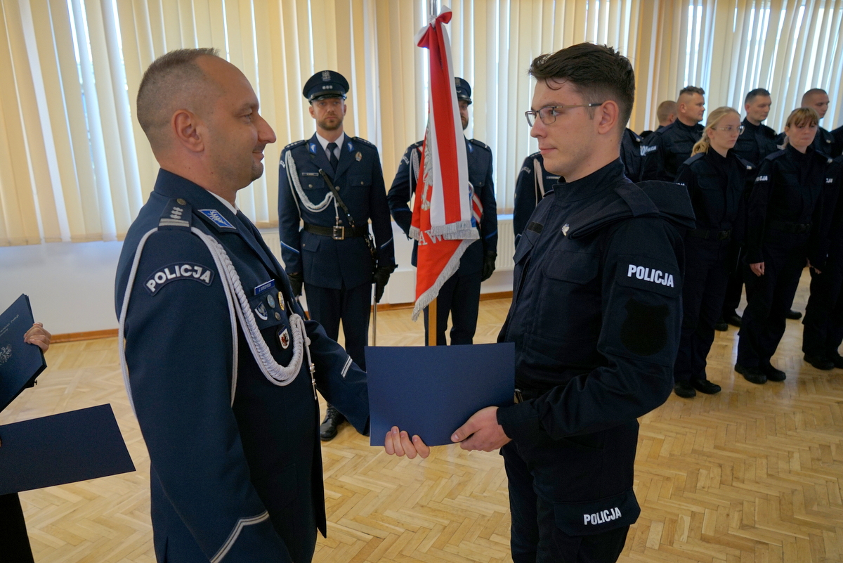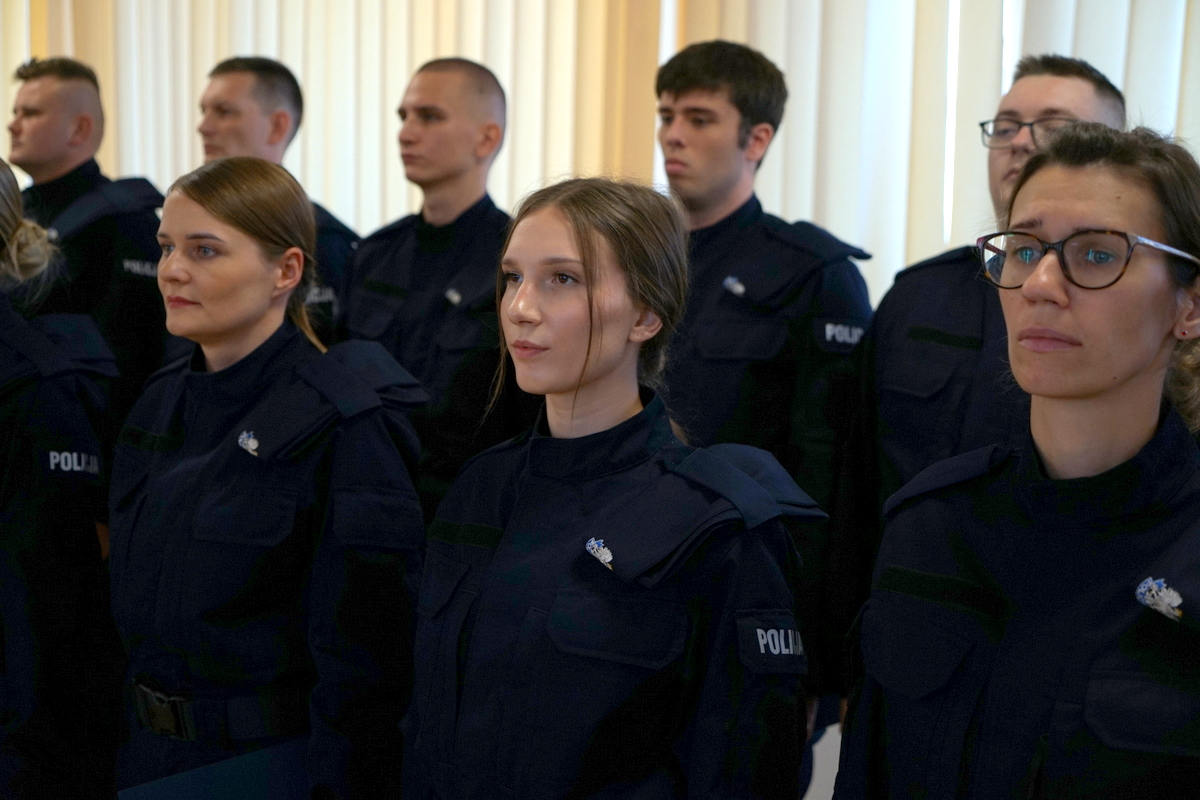 - (…) Policja jest jedną z najważniejszych instytucji w życiu publicznym. Każdego dnia dbamy o bezpieczeństwo i porządek publiczny, aby obywatele mogli żyć spokojnie i bezpiecznie. Wasze ślubowanie jest więc nie tylko formalnym aktem, ale to przede wszystkim deklaracja służby drugiemu człowiekowi, a także gotowości do poświęceń w imię dobra wspólnego. Ten rok ma dla naszej formacji wymiar szczególny – obchodzimy jubileusz 100-lecia kobiet w Policji. To wspaniała okazja, by podkreślić rolę i znaczenie Pań, które od stulecia współtworzą historię naszej służby, wnosząc profesjonalizm, odwagę i niezwykłą determinację. Dla Was, nowo przyjętych funkcjonariuszy i funkcjonariuszek to dodatkowa inspiracja i zobowiązanie, by kontynuować tę piękną tradycję. Drodzy funkcjonariusze, przed Wami szkolenie podstawowe – okres intensywnej nauki, ćwiczeń i zdobywania doświadczenia. Życzę Wam, abyście wykorzystali ten okres jak najlepiej, by kiedy powrócicie do jednostek, móc w pełni i skutecznie realizować swoją misję (...).