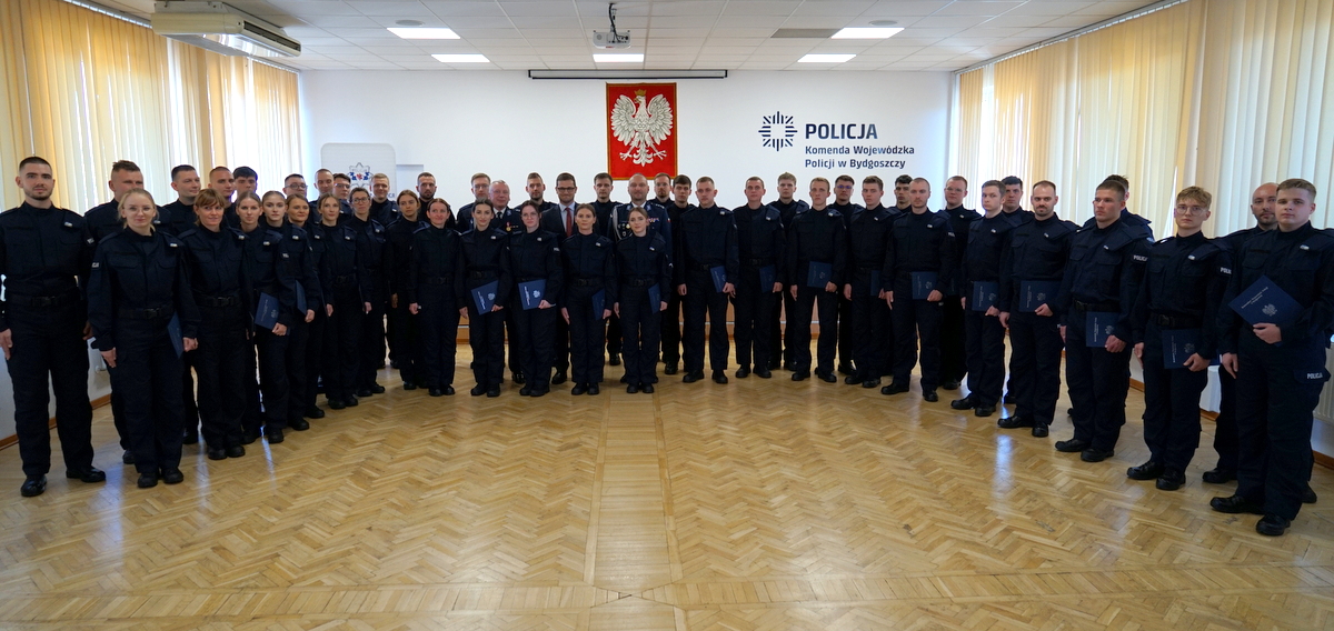 Czterdziestu pięciu nowych policjantów, którzy złożyli ślubowanie, po zakończonym szkoleniu podstawowym w Szkole Policji w Słupsku, trafi do jednostek naszego garnizonu. I tak: do komendy miejskiej w Bydgoszczy trafi 23 policjantów, do Oddziału Prewencji Policji w Bydgoszczy - 6, do Nakła – 4, do Grudziądza i Żnina – 2, po jednym do: Torunia, Inowrocławia i Mogilna oraz 4 do wydziałów KWP w Bydgoszczy.