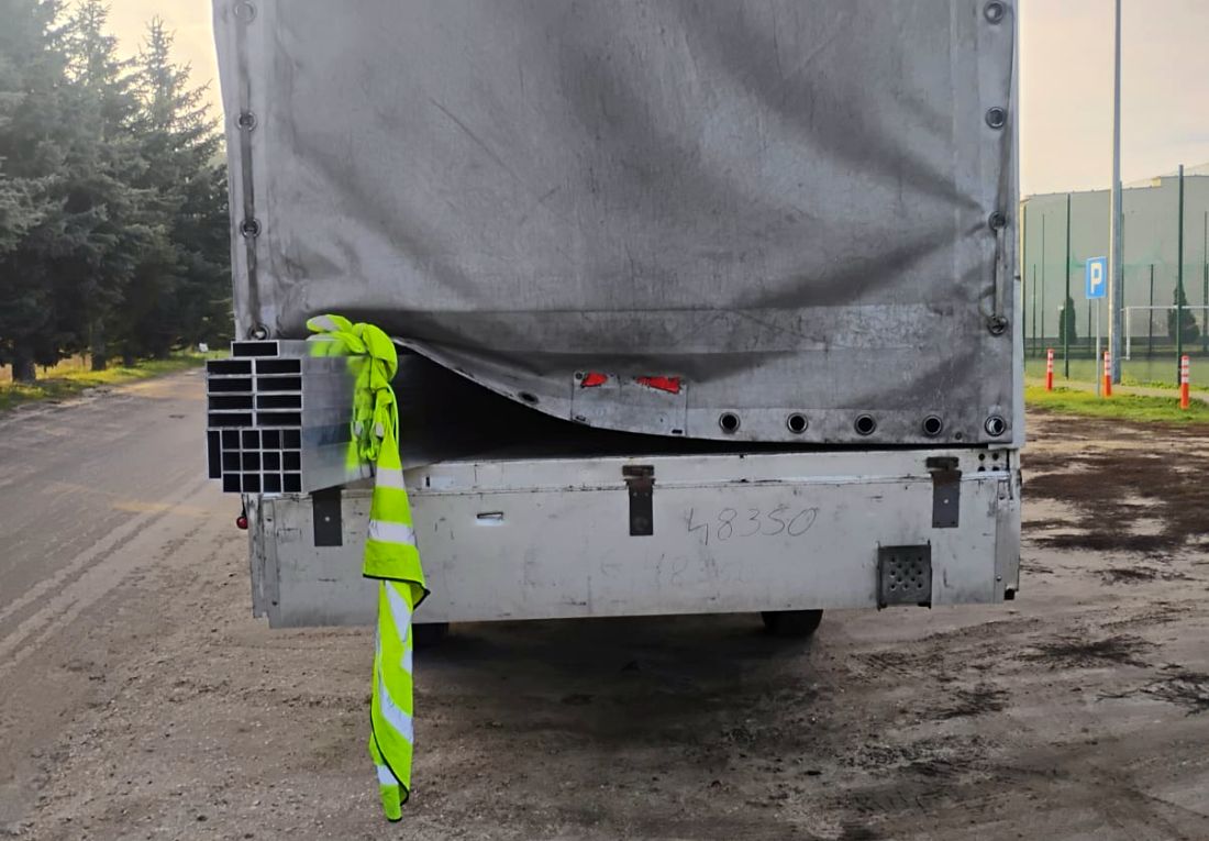 Mężczyzna opuścił sobie burtę skrzyni ładunkowej, zakrywając jednocześnie tablicę rejestracyjną i światła, a tak nie wolno. Popełnił tym samym wykroczenie drogowe. Został za nie ukarany mandatem karnym w wysokości 300 złotych i 8 punktami.