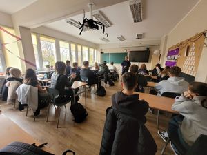 Uczniowie dwóch klas wzięli udział dziś (05.11.25r.) w lekcjach z policjantami. Spotkanie dotyczyło zagadnień między innymi cyberzagrożeń wynikających z negatywnych zachowań ludzi.