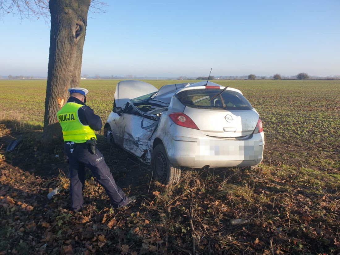 Dziś (07.11.25r.) około godz. 7.40 dyżurny inowrocławskiej komendy został powiadomiony o zdarzeniu drogowym w miejscowości Konary, gmina Dąbrowa biskupia. Wstępne ustalenia policjantów na miejscu wskazują na to, że opel corsa na łuku wypadł z drogi i uderzył w drzewo. Samochodem jechały dwie 18-letnie kobiety, które z obrażeniami trafiły do szpitala.