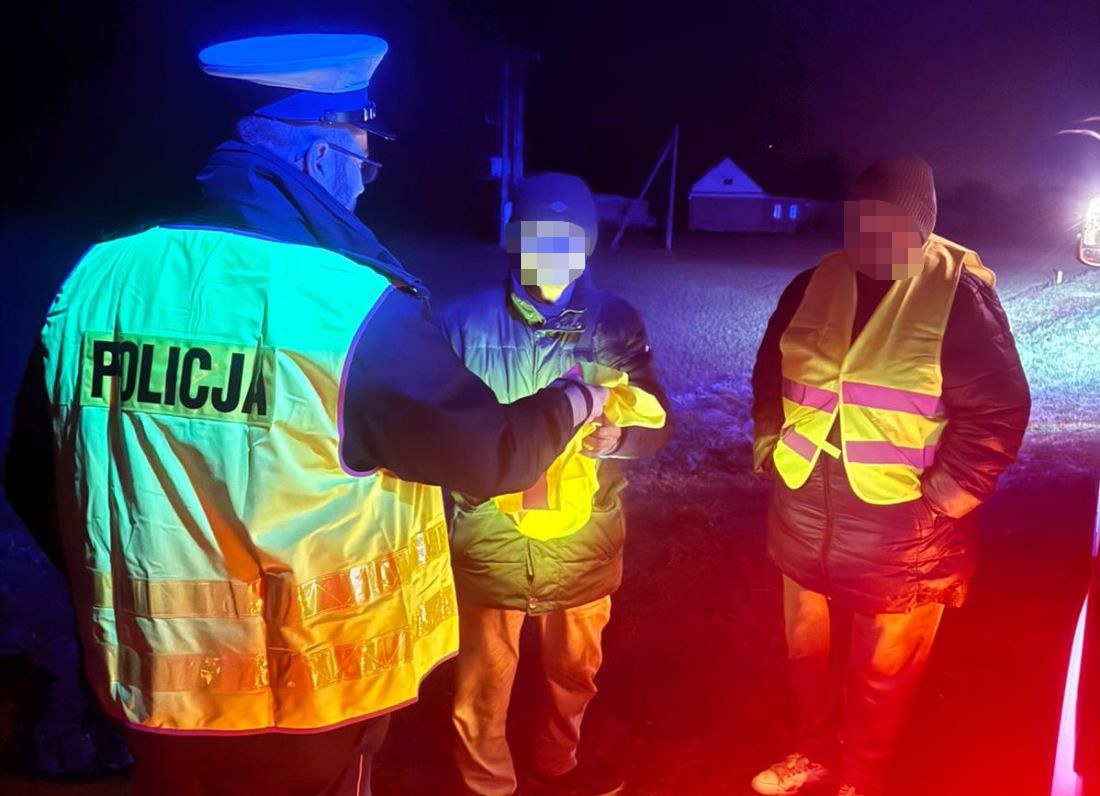 Mamy szybko zapadający zmrok i długie, mgliste poranki. Pieszych i rowerzystów, szczególnie poza terenem zabudowanym gorzej widać na drodze. Zaradza temu kamizelki wręczane przez policjantów.