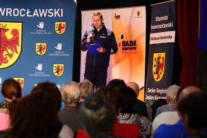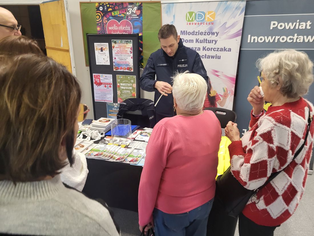 Warto wspomnieć, że przybyli na finał konkursu Seniorzy mogli wyposażyć się dzięki policjantom w broszurki i książeczki edukacyjne o bezpieczeństwie w ruchu drogowym oraz kamizelki odblaskowe. Mogli wziąć udział również w loterii związanej z tym zagadnieniem. Otrzymane kupony z pytań wzięły udział w losowaniu. Trzy osoby dodatkowo obdarowane zostały przez Powiatu Inowrocławskiego upominkami.