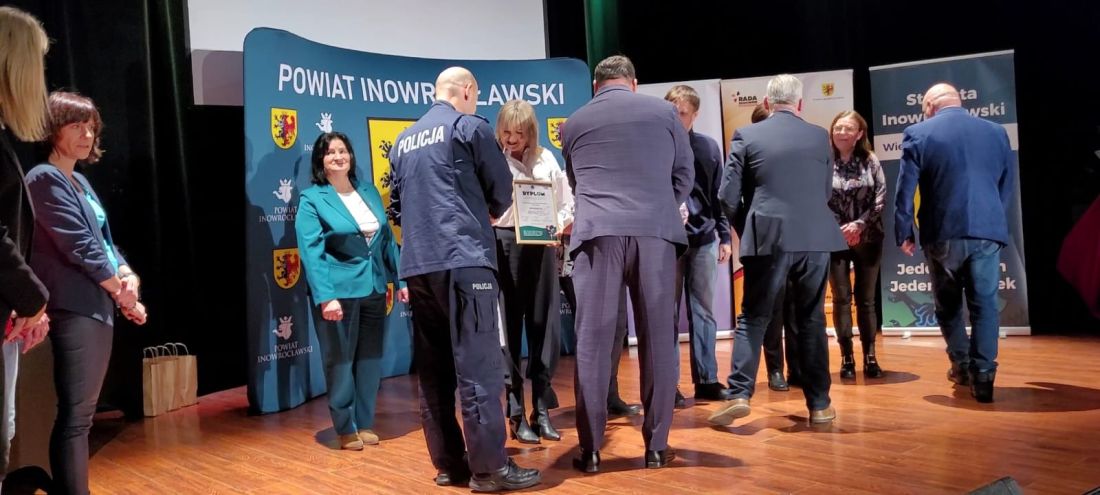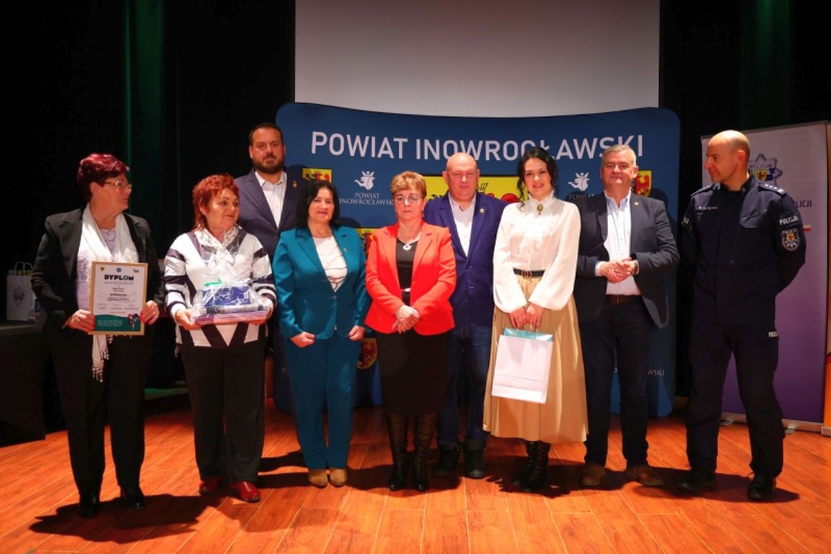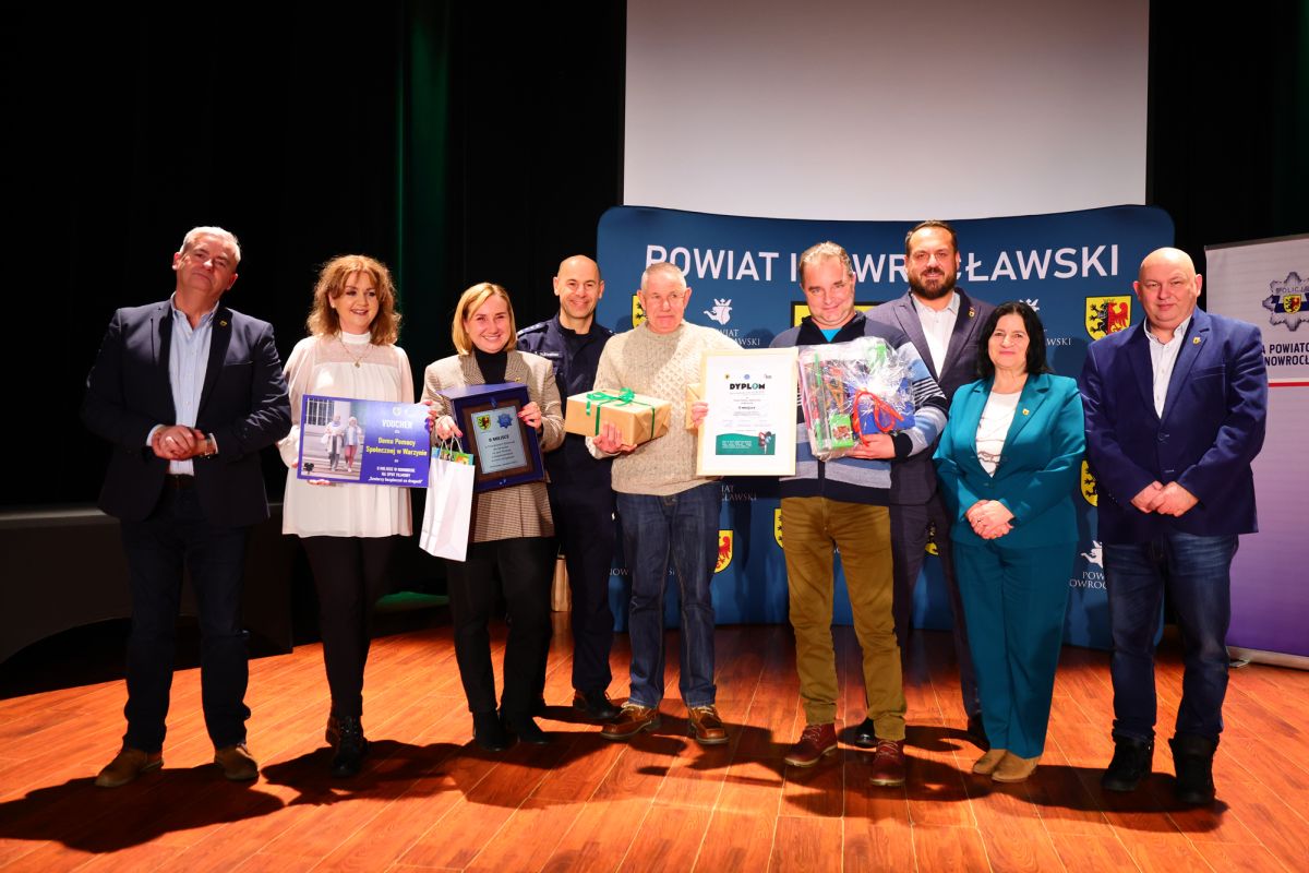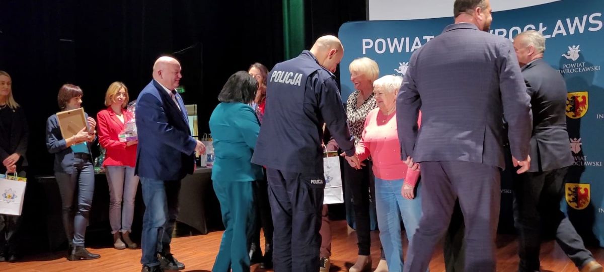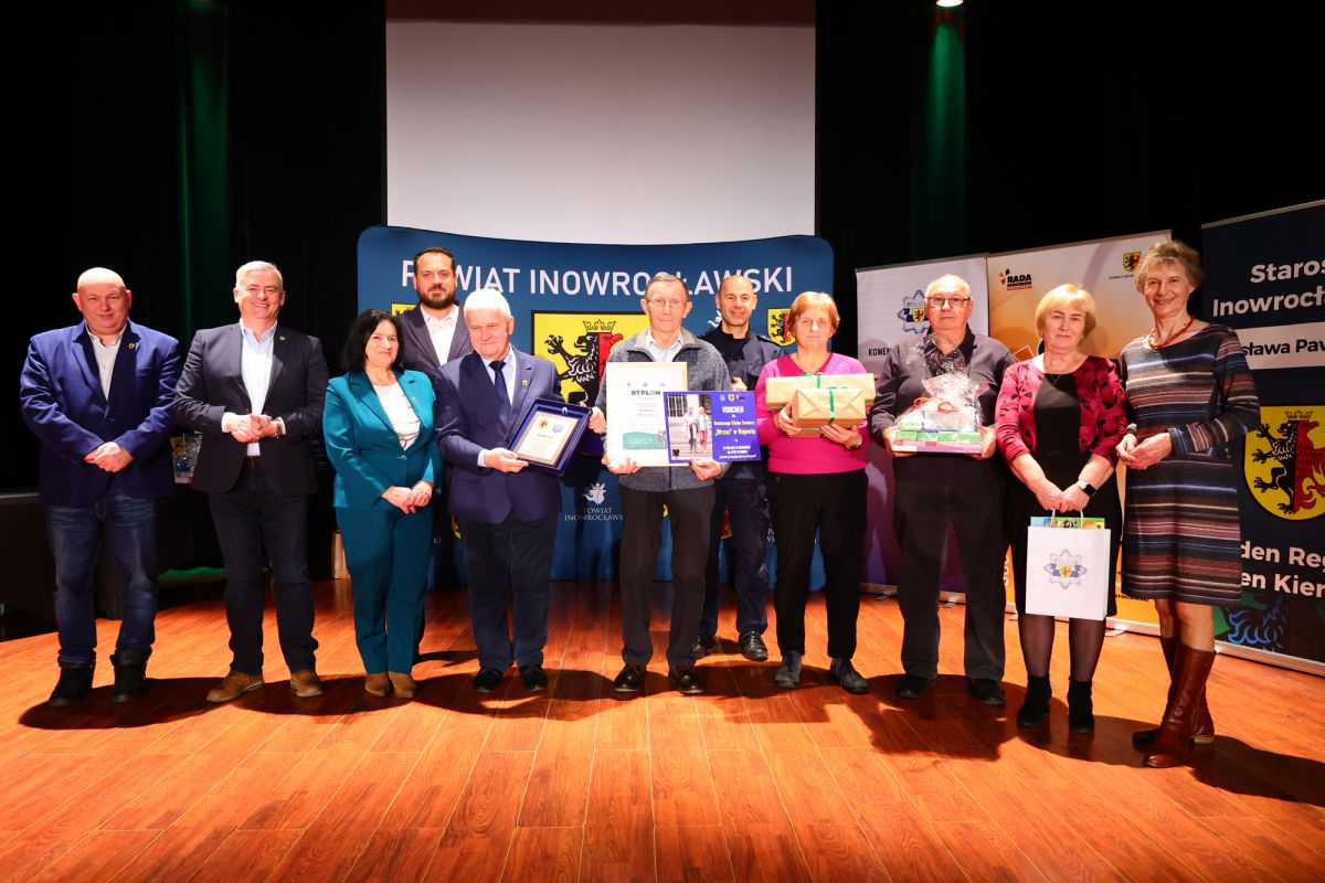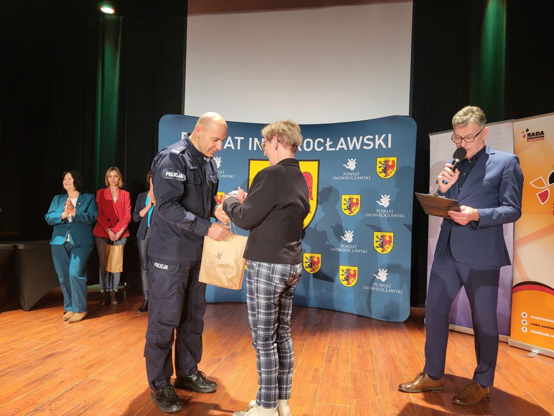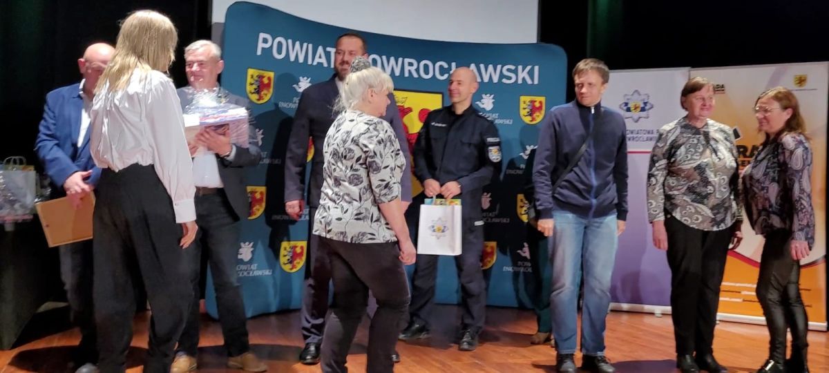 Nagrody wręczali: Wicestarosta Inowrocławski pan Henryk Procek, Komendant Powiatowy Policji insp. Robert Olszewski, Członkowie Zarządu Powiatu panowie Maciej Basiński i Wojciech Gerus, Przewodnicząca Rady Seniorów Powiatu Inowrocławskiego pani Alicja Sobczak.