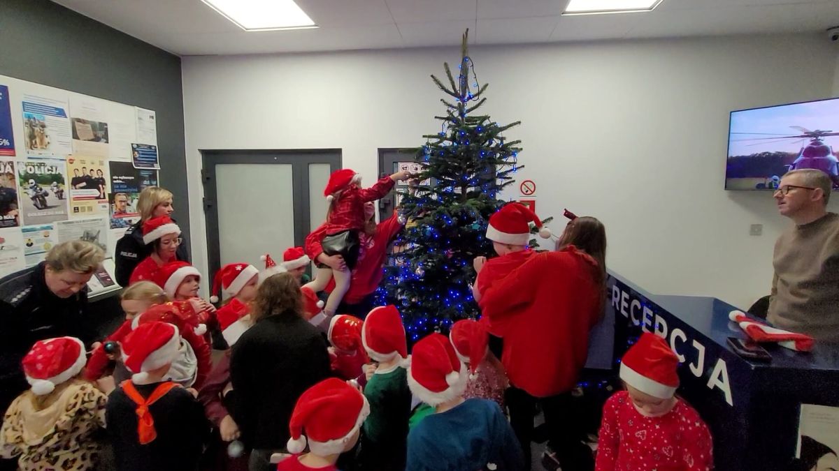Komendę Powiatową Policji w Inowrocławiu odwiedzili specjalni goście. To dzieci z miejscowego przedszkola „U Natalki i Kubusia”. Mali pomocnicy Świętego Mikołaja pomogli ubrać policyjną choinkę.