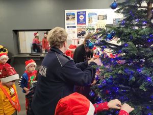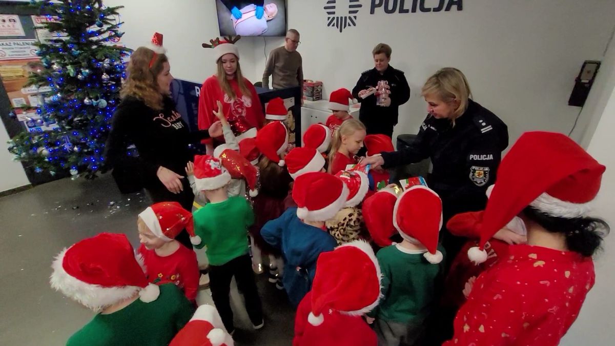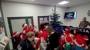 Dzieci zostały zaproszone przez miejscowych policjantów, by wspólnie przystroić świąteczne drzewko. Bardzo szybko na choince pojawiły się bombki oraz inne piękne ozdoby. Było przy tym wiele gwary i radości.