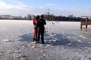 Zimowa aura przyniosła mrozy i zamarzanie akwenów. Służby nie szczędzą wysiłku, by działać na rzecz bezpieczeństwa. Apelujemy, aby nie wchodzić na lód!