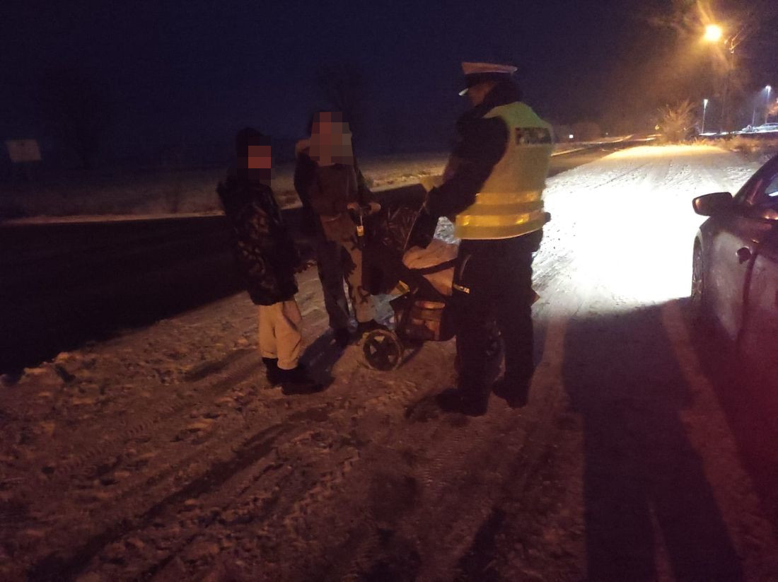 Policjanci wydziału ruchu drogowego podczas działań na drogach wręczają odblaskowe kamizelki między innymi pieszym. Edukują uczestników ruchu, że odblaski poprawiają widoczność, a nawet ratują życie.