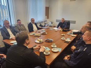 Dziś (19.01.26r.) Komendant Powiatowy Policji w Inowrocławiu insp. Robert Olszewski i Zastępca Komendanta nadkom. Paweł Mróz, gościli w siedzibie policjantów przedstawicieli samorządów, nadleśnictwa oraz banku. Zaproszenie przyjęli: Wójt Gminy Inowrocław Pan Grzegorz Piątek, Wójt Gminy Rojewo Pan Rafał Żurowski, Wójt Gminy Złotniki Kujawskie Pan Waldemar Kubiak, Wójt Gminy Dąbrowa Biskupia Pan Marcin Filipiak, Nadleśniczy Nadleśnictwa Gniewkowo Pan Bartosz Pewniak i Prezes Zarządu Banku Spółdzielczego w Kruszwicy Pan Marek Mrówczyński.