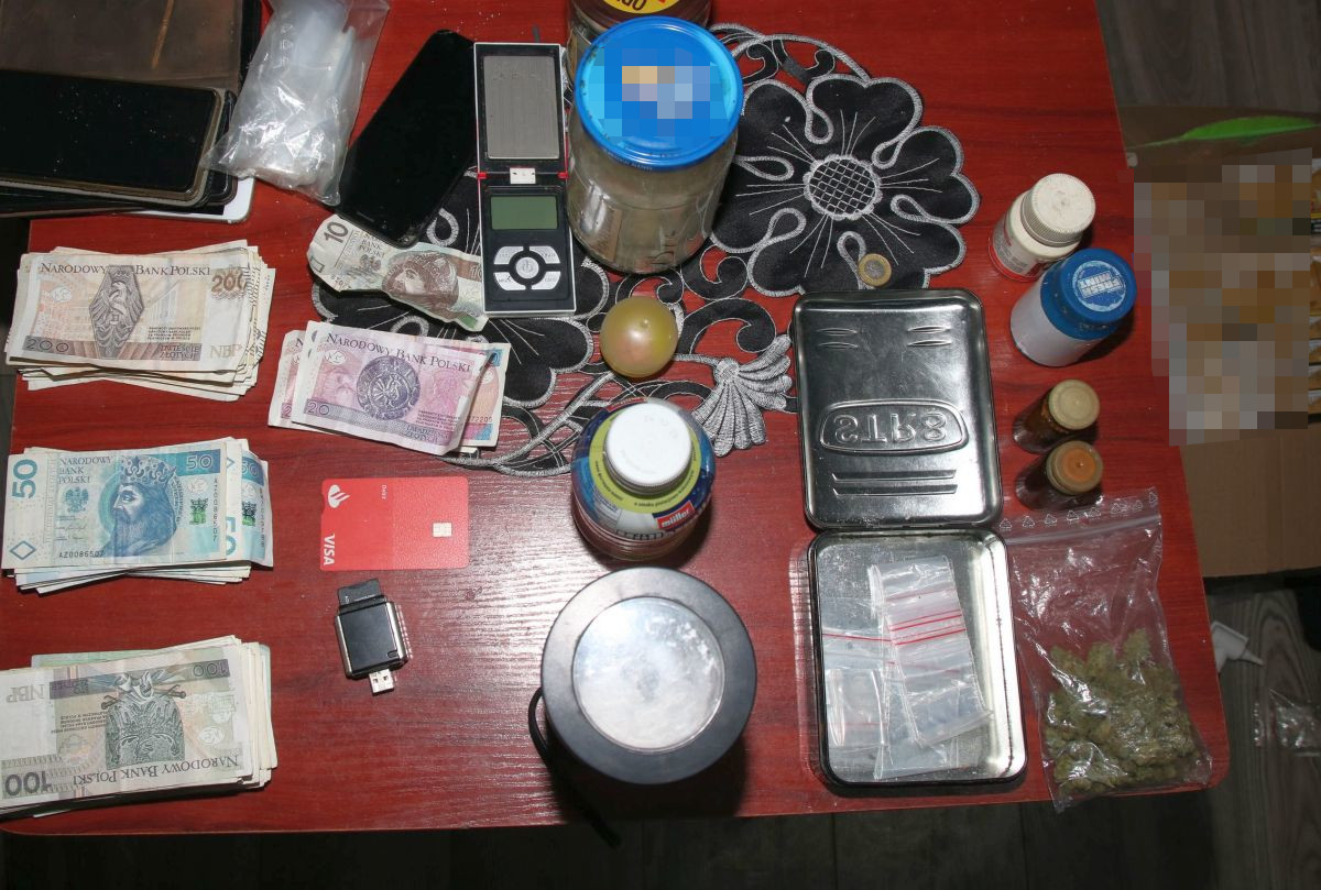 W mieszkaniu oraz garażu policjanci ujawnili susz roślinny, tak zwany kryształ i biały proszek. Wszystkiego razem było blisko 1,5 kg. Ponadto mężczyzna miał wagę elektroniczną, woreczki strunowe, młynek, a także osiem telefonów komórkowych i prawie 27 tys. zł. w gotówce. To nie wszystko. Miał również 2 520 sztuk papierosów bez polskich znaków akcyzy.