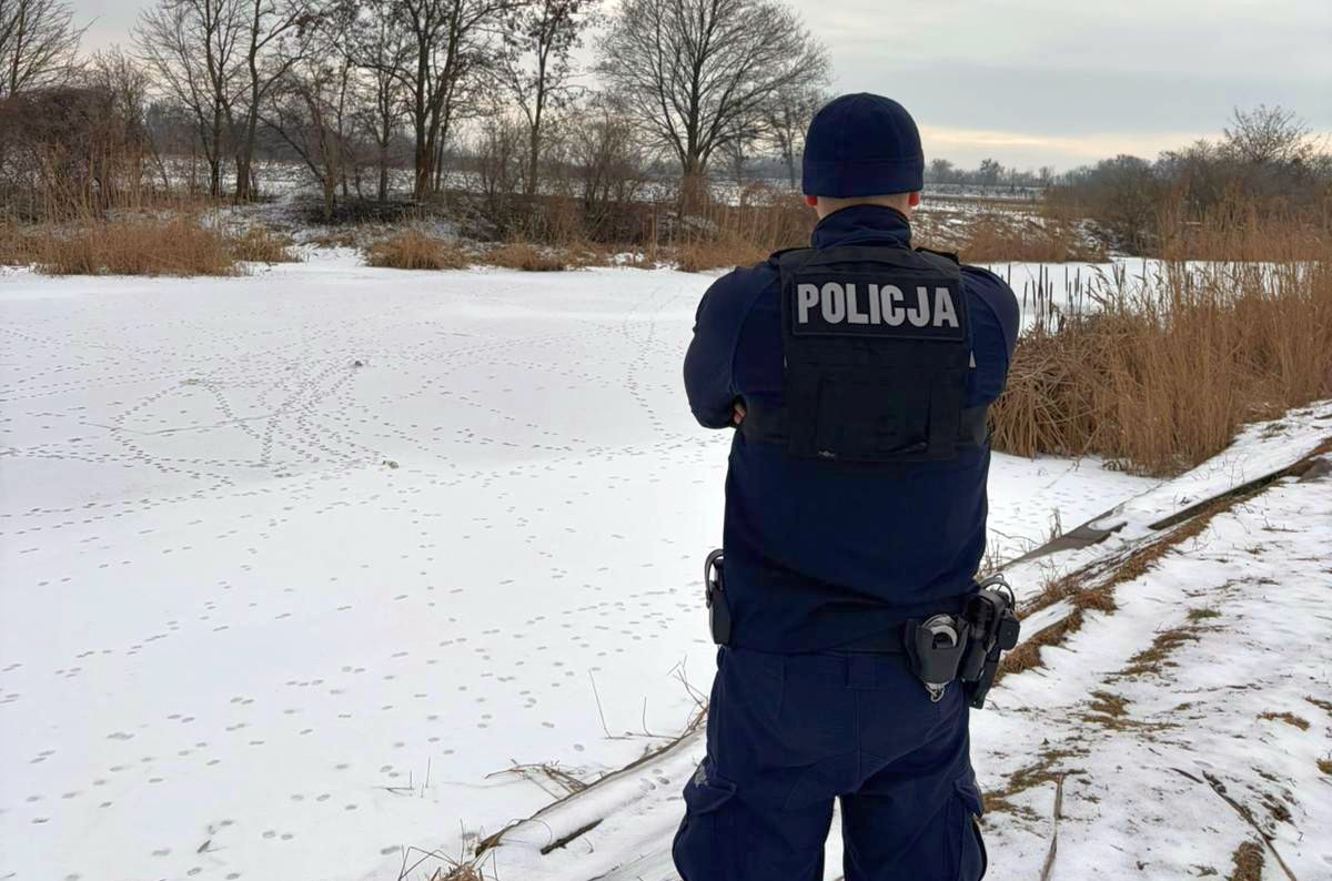Policjanci z komisariatu w Pakości czuwają nad bezpieczeństwem na terenach przywodnych. Monitorują to, aby ludzie nie wchodzili na lód.