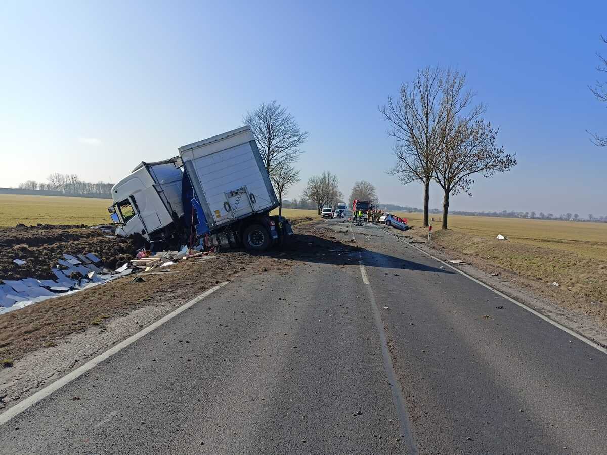 Dzisiaj (13.03.2026r.) o godzinie 8:20 dyżurny KPP Inowrocław otrzymał zgłoszenie o wypadku drogowy na DK 15 w miejscowości Szadłowice. Ze wstępnych ustaleń wynika, że doszło do zderzenia pojazdu osobowego marki Renault z ciągnikiem siodłowym Scania. Prawdopodobnie kierujący Renault zjechał na przeciwległy pas i zderzył się czołowo z ciężarówką. W wyniku zderzenia śmierć poniósł 40-letni mężczyzna, który kierował osobówką. 55-letni kierowca pojazdu ciężarowego nie odniósł obrażeń.
