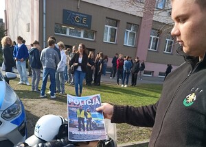 Mundurowi z Komendy Powiatowej Policji w Inowrocławiu współpracują z Zespołem Szkół Chemiczno - Elektronicznych w Inowrocławiu od wielu lat. W szkole działa klasa o profilu mundurowym. Inowrocławscy policjanci skorzystali z zaproszenia i wczoraj (10.04.2026r.) wzięli i udział w drzwiach otwartych. Szkołę licznie odwiedzili uczniowie klas ósmych, stojący przed wyborem dalszej edukacji.