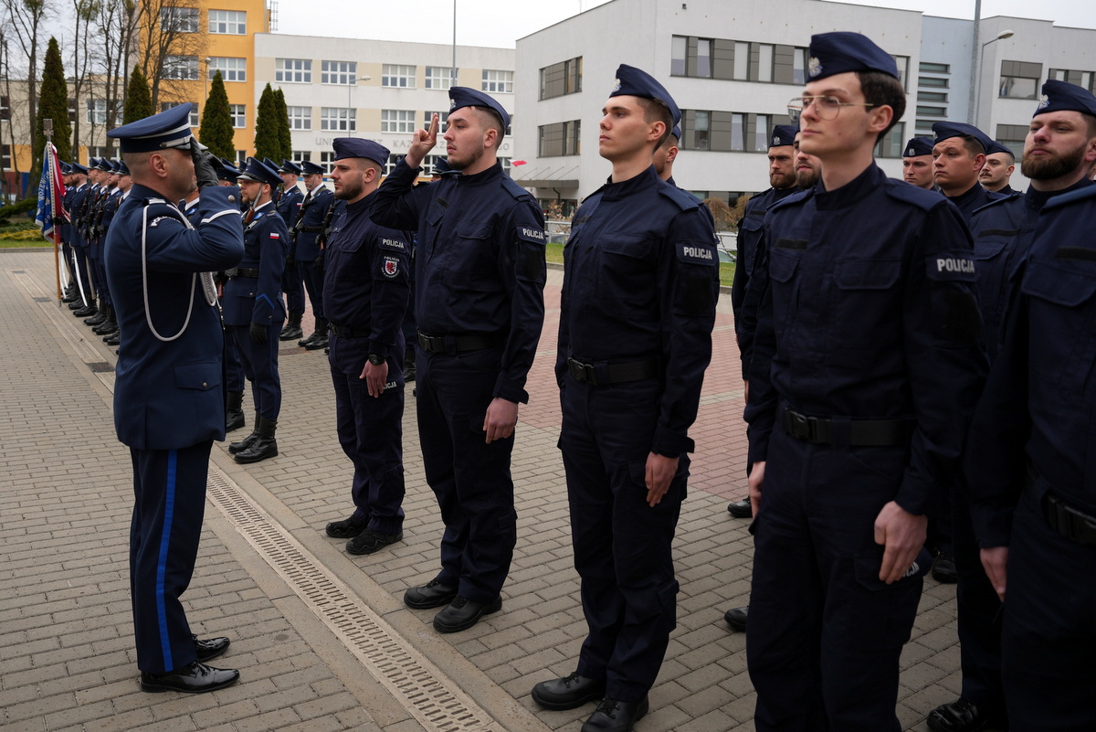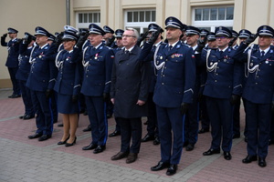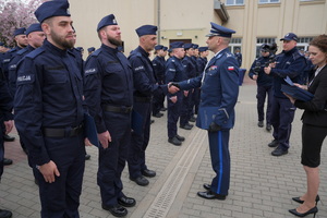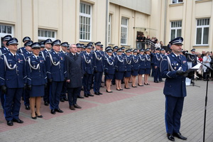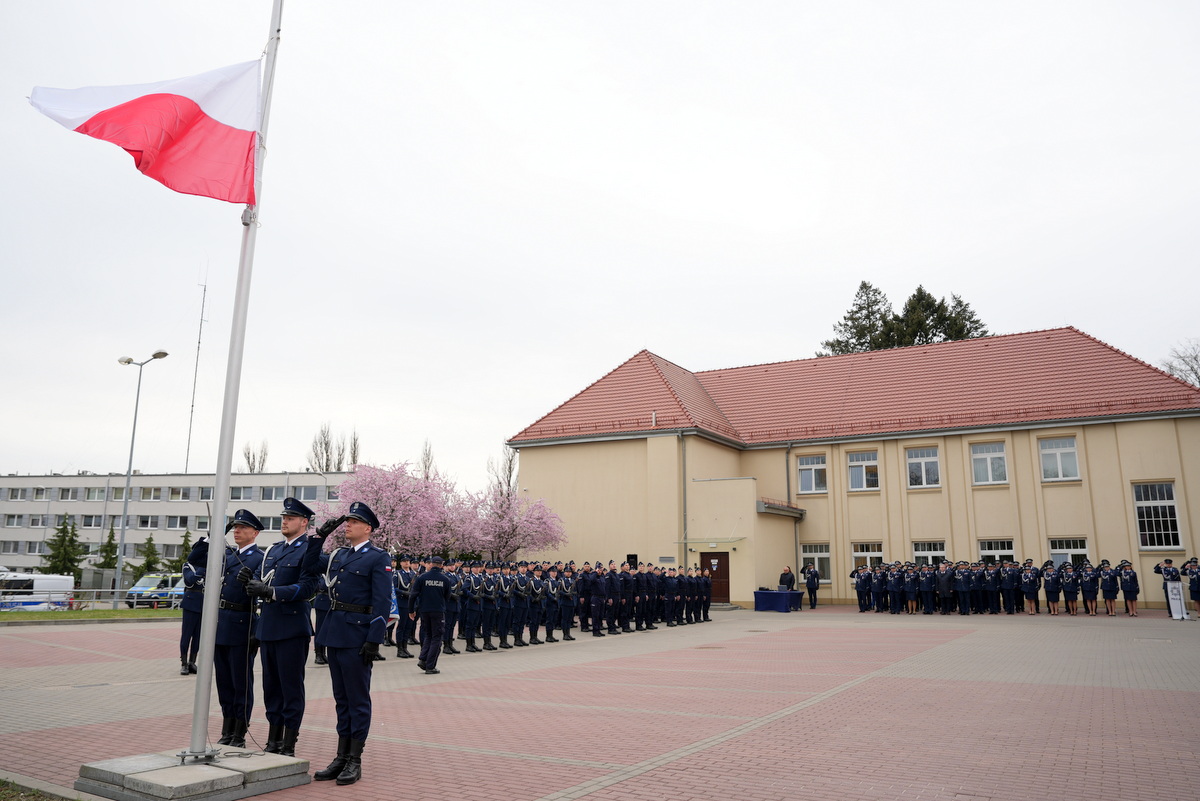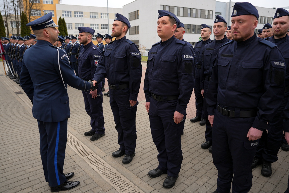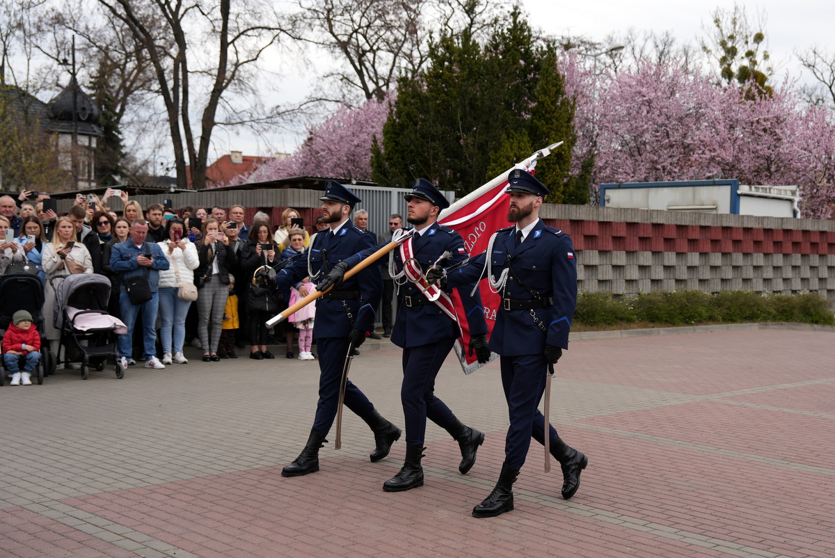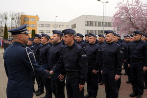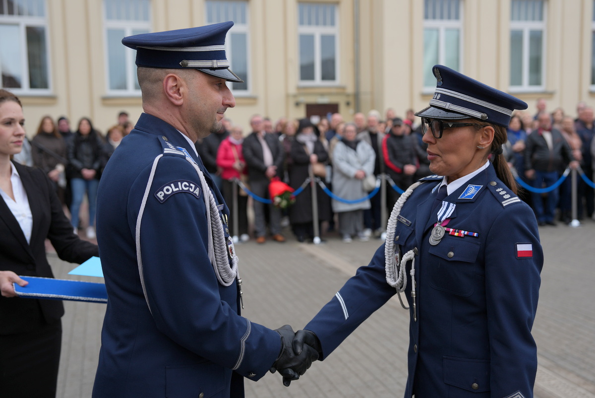 - Dzisiejsza uroczystość ma dla nas szczególne znaczenie. Jest to pierwsze w tym roku przyjęcie do służby w szeregi kujawsko-pomorskiej Policji nowych policjantów. Służba w Policji to nie tylko zawód – to przede wszystkim zobowiązanie wobec Ojczyzny, ale także drugiego człowieka. To gotowość do niesienia pomocy, często w sytuacjach trudnych, wymagających odwagi i poświęcenia. To również codzienna troska o bezpieczeństwo obywateli, dbałość o porządek publiczny – wartości fundamentalne dla prawidłowego funkcjonowania państwa. Wasza obecność tutaj jest dowodem na to, że nie brakuje ludzi, którzy chcą podejmować się tych wyzwań i służyć społeczeństwu.(…)  Słowa podziękowania kieruję również do Waszych rodziców i bliskich. To dzięki wychowaniu, przekazanym wartościom i wsparciu, jesteście dziś gotowi podjąć się tej wymagającej służby. Wychowanie w duchu patriotyzmu, szacunku do drugiego człowieka i odpowiedzialności za wspólne dobro ma dziś swoje piękne odzwierciedlenie.(…) Na zakończenie życzę Wam, abyście zawsze pamiętali, jak ważną misję realizujecie. Niech służba w Policji będzie dla Was źródłem dumy i satysfakcji, a także motywacją do nieustannego rozwoju i samodoskonalenia. Gratuluję Wam wyboru tej drogi. Życzę powodzenia i bezpiecznej służby.