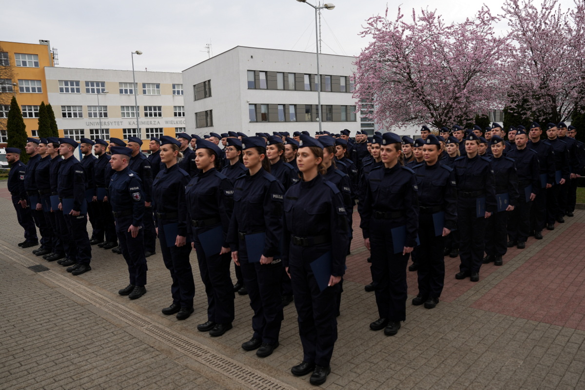 Osiemdziesięciu czterech nowych policjantów, którzy złożyli ślubowanie, po zakończonym szkoleniu podstawowym, trafi do jednostek naszego garnizonu, gdzie dbać będą o bezpieczeństwo mieszkańców regionu. I tak: 44 do Bydgoszczy, 10 do Oddziału Prewencji Policji w Bydgoszczy, 7 do Torunia, po 5 do: Mogilna i Nakła, po 4 do Brodnicy i Inowrocławia, i po 1 do: Chełmna, Sępólna, Tucholi, KWP w Bydgoszczy oraz Samodzielnego Pododdziału Kontrterrorystycznego Policji w Bydgoszczy. Wśród nowych adeptów jest 25 kobiet.