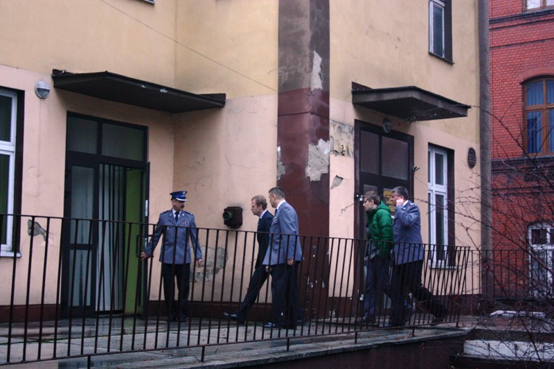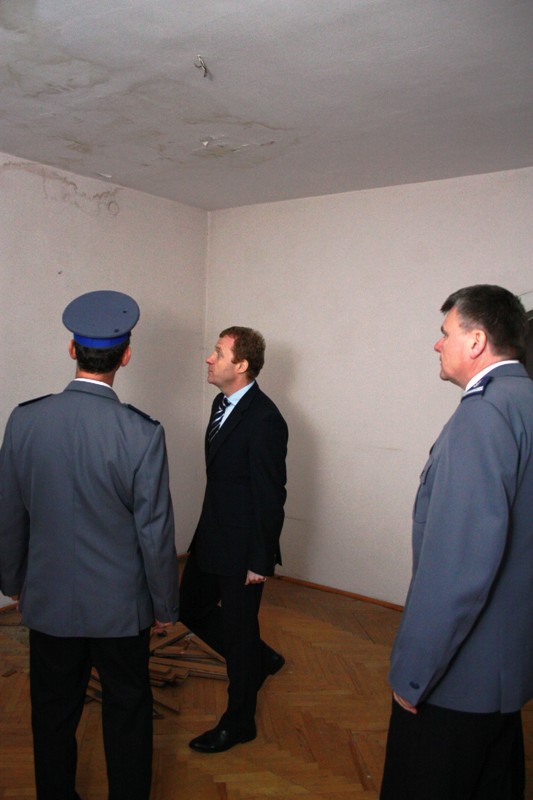 był przewodnikiem po komendzie, pokazując stopień eksploatacji budynku i