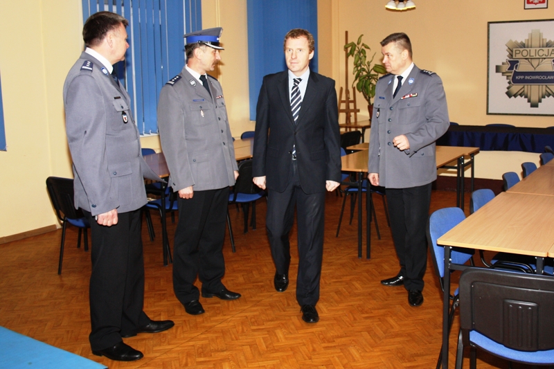 Podsekretarz Stanu Ministerstwa Spraw Wewnętrznych Pan Michał Deskur wraz z Komendantem Wojewódzkim Policji w Bydgoszczy insp. Wojciechem Ołdyński i Zastępcą insp. Wiesławem Domańskim, złożyli wizytę w Komendzie Powiatowej Policji w Inowrocławiu przy ul. Toruńskiej 15.