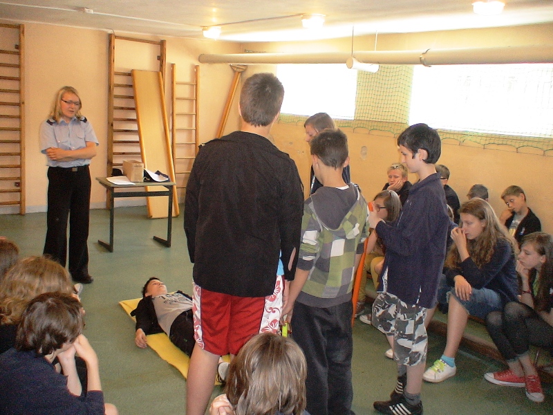 Policjanci z Wydziału Prewencji inowrocławskiej Policji byli ostatnio (11.06.2013r.) w szkole podstawowej w Pakości. Tam zajęciami o charakterze profilaktycznym objęte zostały cztery klasy VI. Po to, by młodzież dowiedziała się na temat konsekwencji jakie mogą wyniknąć z ich negatywnego zachowania, zajęcia przygotowane zostały w różnej formie. Chcemy bowiem jak najbardziej obrazowo docierać do świadomości młodych ludzi. Podczas pogadanki policjanci zwrócili szczególną uwagę na tematykę związaną z popełnianymi przez nieletnich czynami karalnymi. Przykłady wskazane przez mundurowych miały za zadanie ostrzegać uczniów przed podobnymi przypadkami. Policjanci tłumaczyli także, że demoralizacją jest spożywanie przez nieletnich alkoholu czy palenie papierosów. W takich przypadkach nieletni musi liczyć się z tym, że będzie musiał stawić się do sądu dla nieletnich wraz ze swoim rodzicem i tam tłumaczyć się z postępowania. Więcej uwagi poświęcono również narkotykom oraz dopalaczom. Podczas zajęć praktycznych mundurowi zaproponowali młodzieży scenki, w których uczniowie sami brali udział, a następnie dyskutowali o problemie.