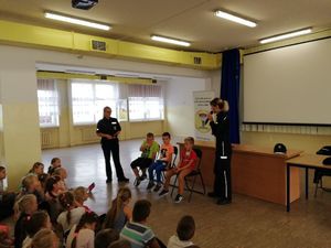 Zajęcia zorganizowane zostały tak, by uczniowie klas pierwszych dowiedzieli się jaką trasę należy wybrać do i ze szkoły, by była ona bezpieczna. Policjantki omówiły zatem zasady prawidłowego przejścia przez jezdnię, podstawowe znaki drogowe, które dotyczą pieszych. Nie mogło też zabraknąć reagowania na zaczepki osób obcych. Łącznie w spotkaniu uczestniczyło 130 dzieci. Wiedzę utrwalano przy pomocy improwizowanych scenek.